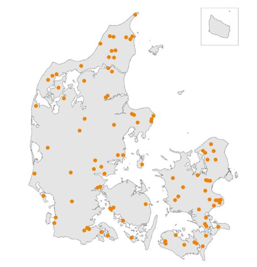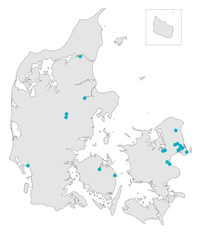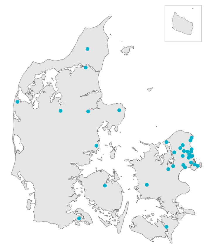Projekterne er geografisk fordelt som følgende:
