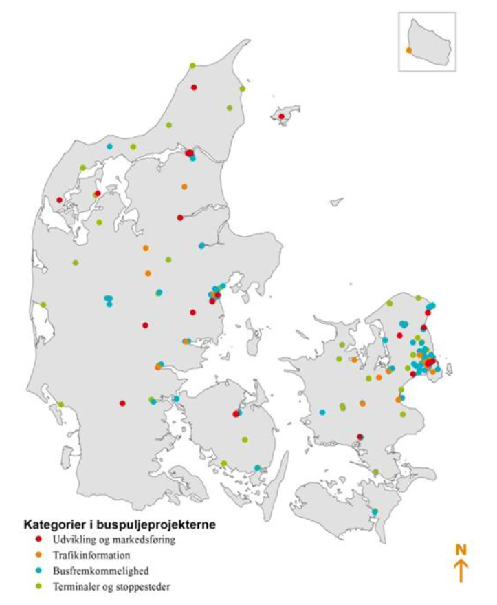Projekterne spænder fra forsøg med nye ruter til forbedret rejseinformation, men har det til fælles, at de styrker den kollektive trafik i yderområderne. Indtil videre er 62 projekter afsluttet. Projekterne, der har fået støtte fra puljen, har været af forskellig karakter og kan primært inddeles i tre kategorier: