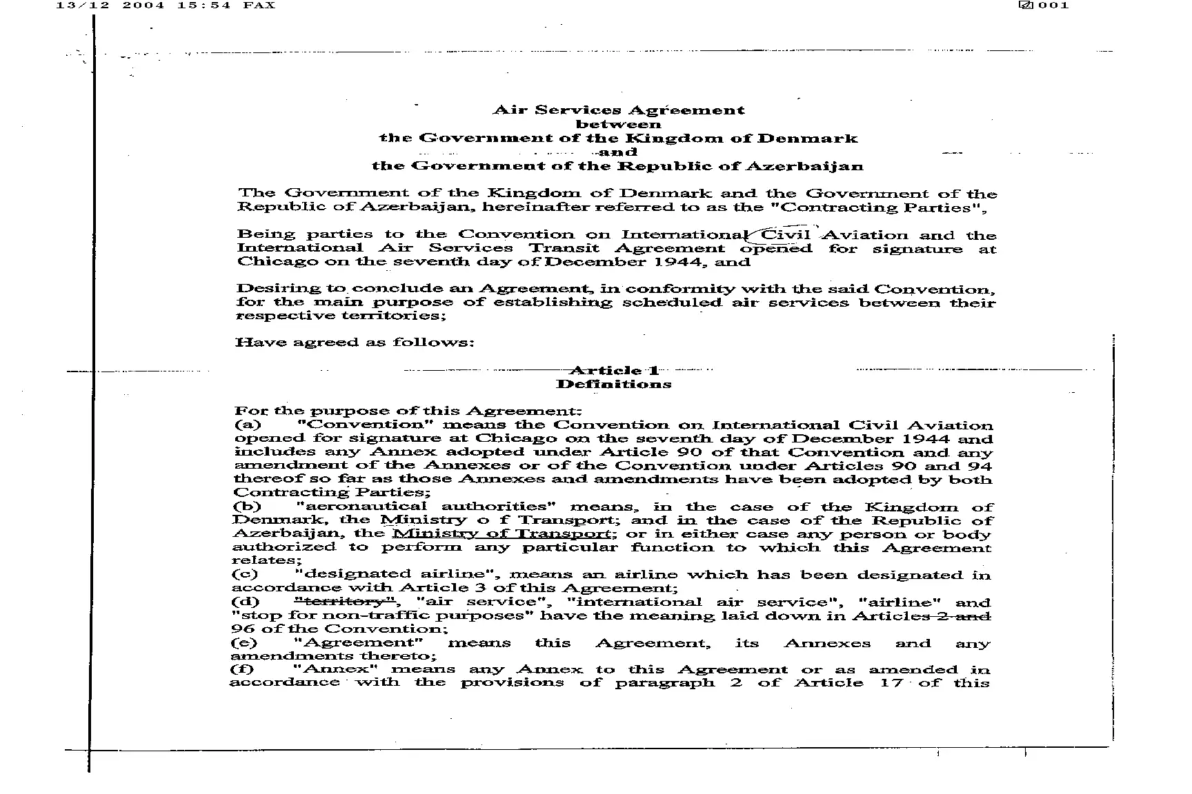 Paraferet luftfartsaftale mellem Danmark og Aserbajdsjan, 2000/2004.