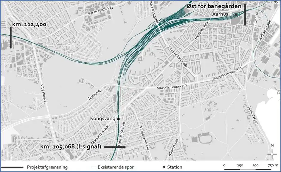 Bortfald af broarbejderne ved Skanderborgvej og Gl. Kongevej. Arbejderne med sporarbejde og sporfornyelse vil overvejende finde sted som beskrevet i miljøkonsekvensrapporten, og vil ikke medføre væsentlige ændringer i projektets samlede støjpåvirkning. Anlægsloven åbner mulighed for støjende arbejder i aften og nattetimerne mod kompensation, hvis den naboretlige tålegrænse overskrides. I det omfang tålegrænsen overskrides vil der således blive udbetalt kompensation. |