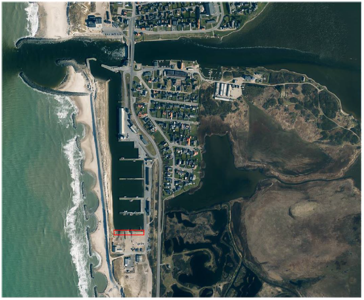 Figur 1:Oversigtskort over Thorsminde havn. Projektområdet er markeret med rød
