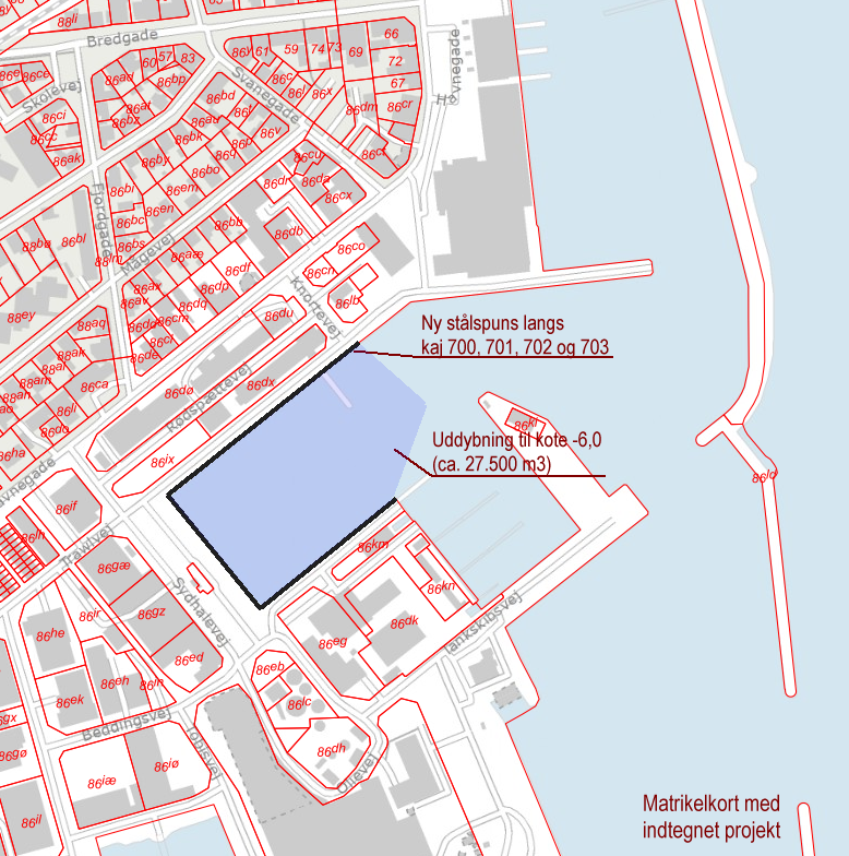 Trafik,- og Bygge- og Boligstyrelsen skal screene projektet for VVM med henblik på en vurdering af, hvorvidt projektet er VVM-pligtigt i medfør af bekendtgørelse nr. 450 af 8. maj 2017 om vurdering af virkning på miljøet (VVM) af projekter vedrørende erhvervshavne og Københavns Havn samt om administration af internationale naturbeskyttelsesområder og beskyttelse af visse arter for så vidt angår anlæg og udvidelse af havne.