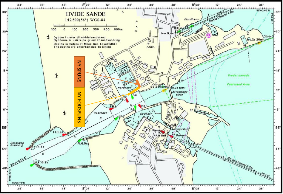 Ifm. uddybning af bassinerne i Hvide Sande Nordhavn for mulighed for anløb med større fartøjer er der behov for forstærkning af de eksisterende anlæg. Ved Kaj 81 forstærkes den eksisterende betonspuns ved etablering af en ny fodspuns (stålspuns) umiddelbart foran den eksisterende indfatning. Mellem kaj 81 og 82 nedbrydes den eksisterende stenskråning, og der etableres en ny indfatning for at opnå yderligere liggeplads. Indfatningen udføres som en stålspunsvæg forankret med jordankre. Der opfyldes med nytilført sandfyld og afsluttes med asfalt.