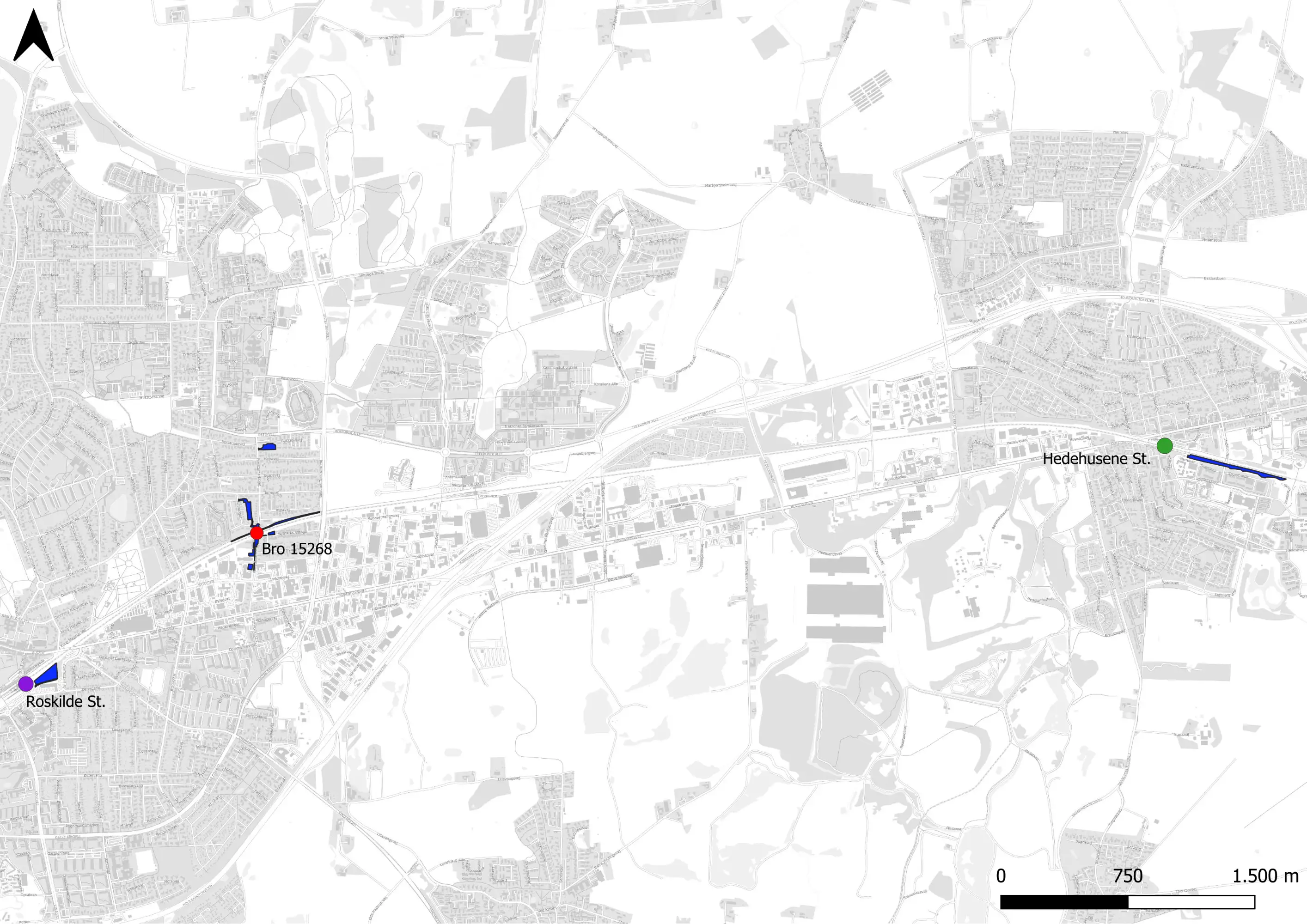 Nærmeste Natura 2000-område er område nr. 136 Roskilde Fjord og Jægerspris Nordskov 1,8 km i fugleflugt fra projektområdet. Arbejdspladsen ved Roskilde Station ligger 1.4 km fra Natura 200-området.