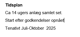 Anlægsarbejdet forventes påbegyndt i oktober 2025 og vare til januar 2026.